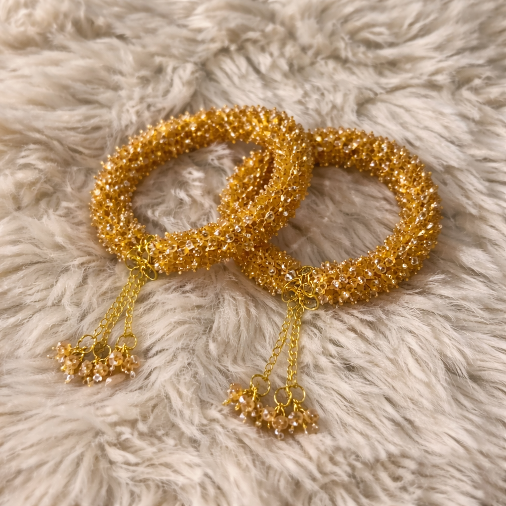 Gajray Pair offers a traditional set of two gajray, perfect for adding cultural elegance to your wardrobe or special occasions. These intricately designed pieces showcase authentic craftsmanship and timeless appeal. Ideal for festivals, celebrations, or everyday wear, this pair combines comfort with style. Enhance your traditional look with these versatile gajray that complement various outfits beautifully.